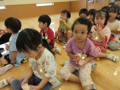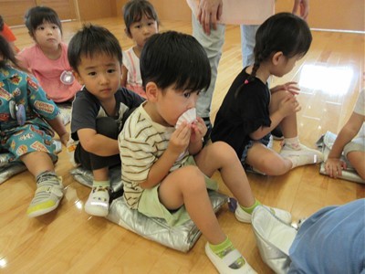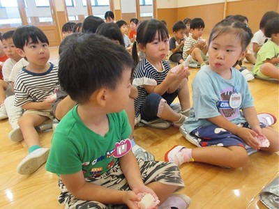 実際に小さいおにぎりをもぐもぐと30回噛んで食べてみると…こんなに噛むんだ!と、みんな驚いていました!!