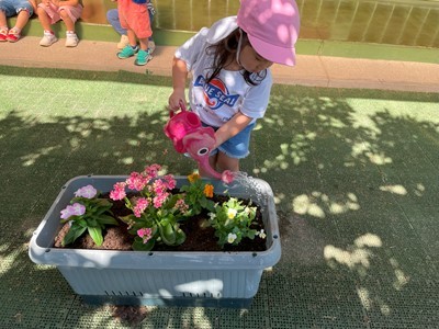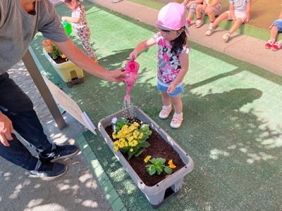 「きれいなお花が元気に咲いていますように」と、最後は水やりをして寄せ植え完成♡