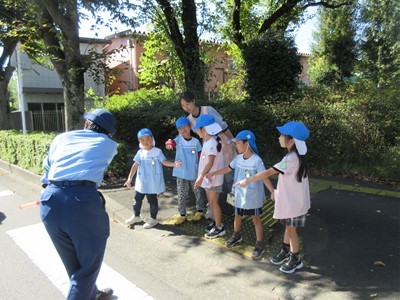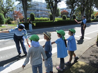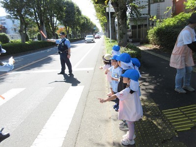 当日は、お天気にも恵まれ「右よ~し!左よ~し!右よ~し!」と、みんな元気に横断歩道を渡ることができました。