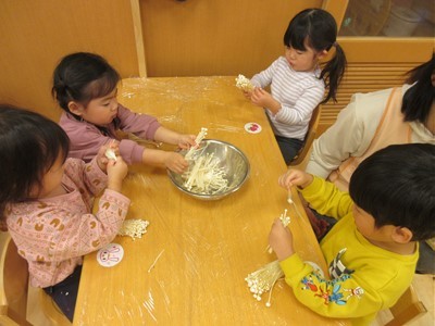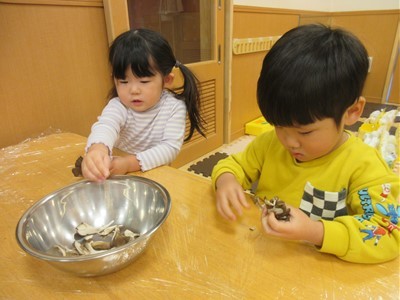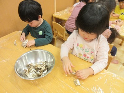 でも、裂くのは気持ちよくでき、次から次へとみんな夢中で取り組んでいました♩