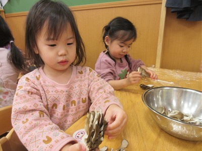 食育「きのこほぐし」(にじ)