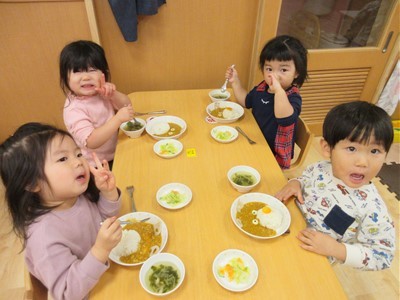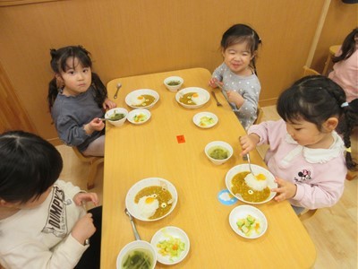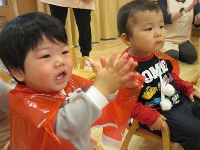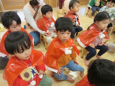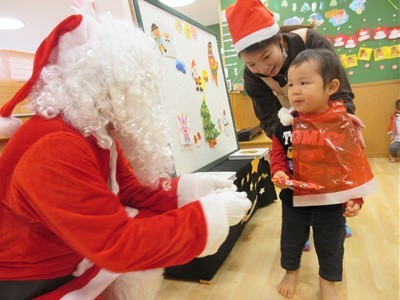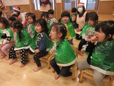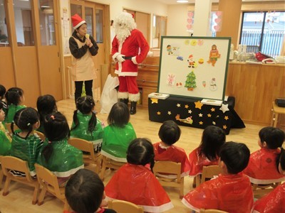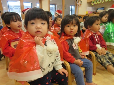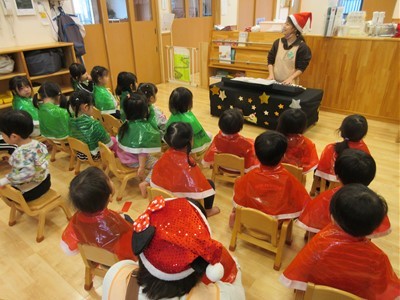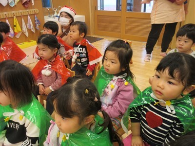 “あわてんぼうのサンタクロース”を歌ったり、先生たちからのプレゼントのパネルシアターを見て、楽しみました♩