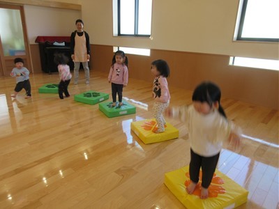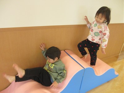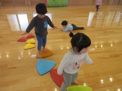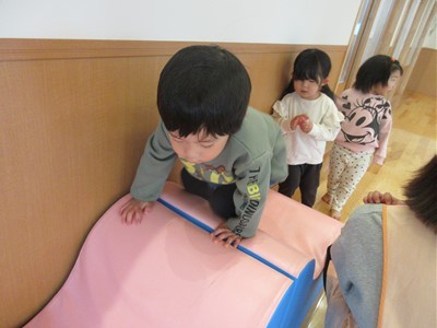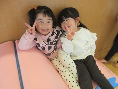 トランポリンに滑り台、トンネルやバランスストーンで身体をたくさん動かし、みんな笑顔で楽しんでいました(*^-^*)