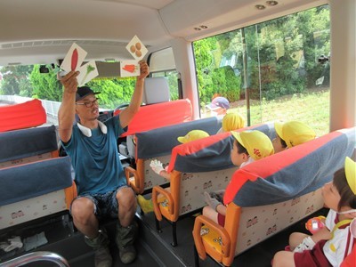 園バスに乗って意気揚々と畑へ向かいます!